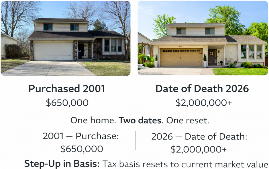 for approximately $2,000,000, the capital gains tax exposure is effectively eliminated. The stepped-up basis aligns with current market value,